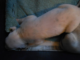Puppies are growing! They are starting to get up on their feet, and when they are excited they look like drunken sailors. They stagger around and fall over. Spots are starting to appear.